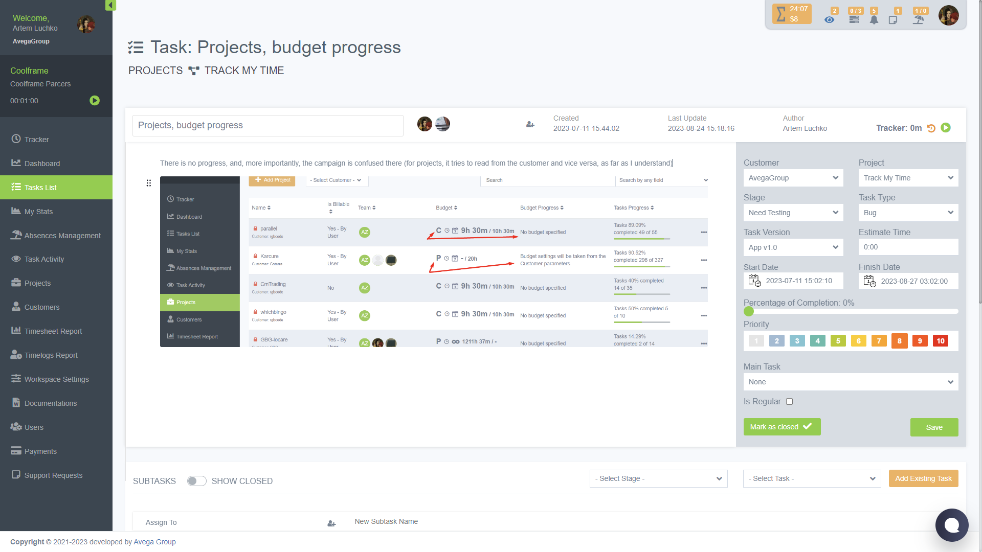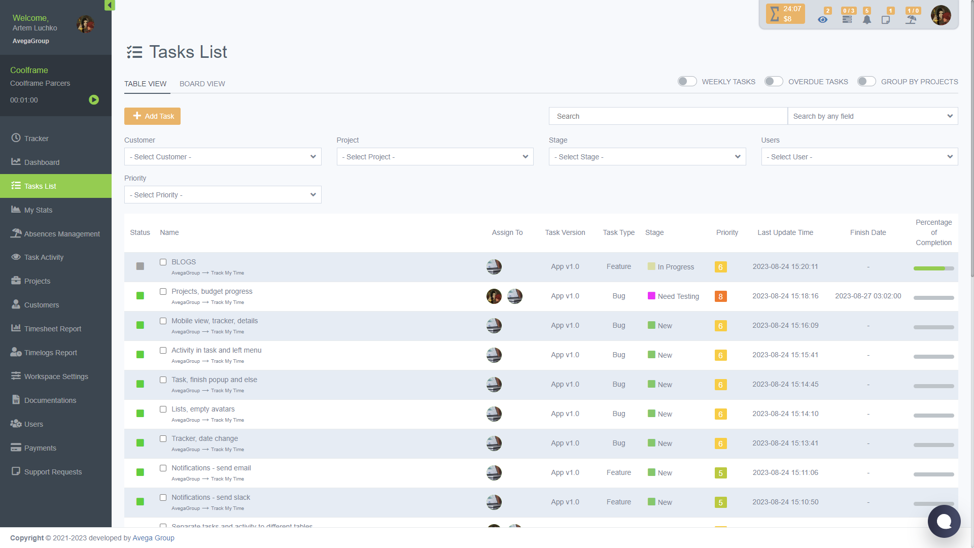 "The software is nicely designed and intuitive. It can be easily customized for different types of projects. I use it for personal needs, which allows me to report to each specific customer, and not get confused in the large amount of work performed."