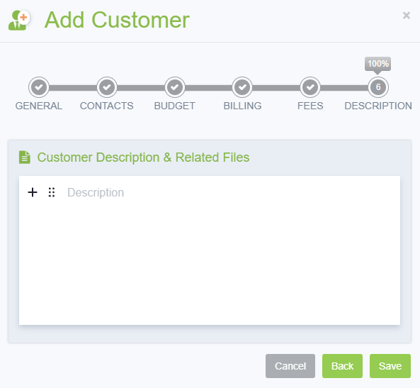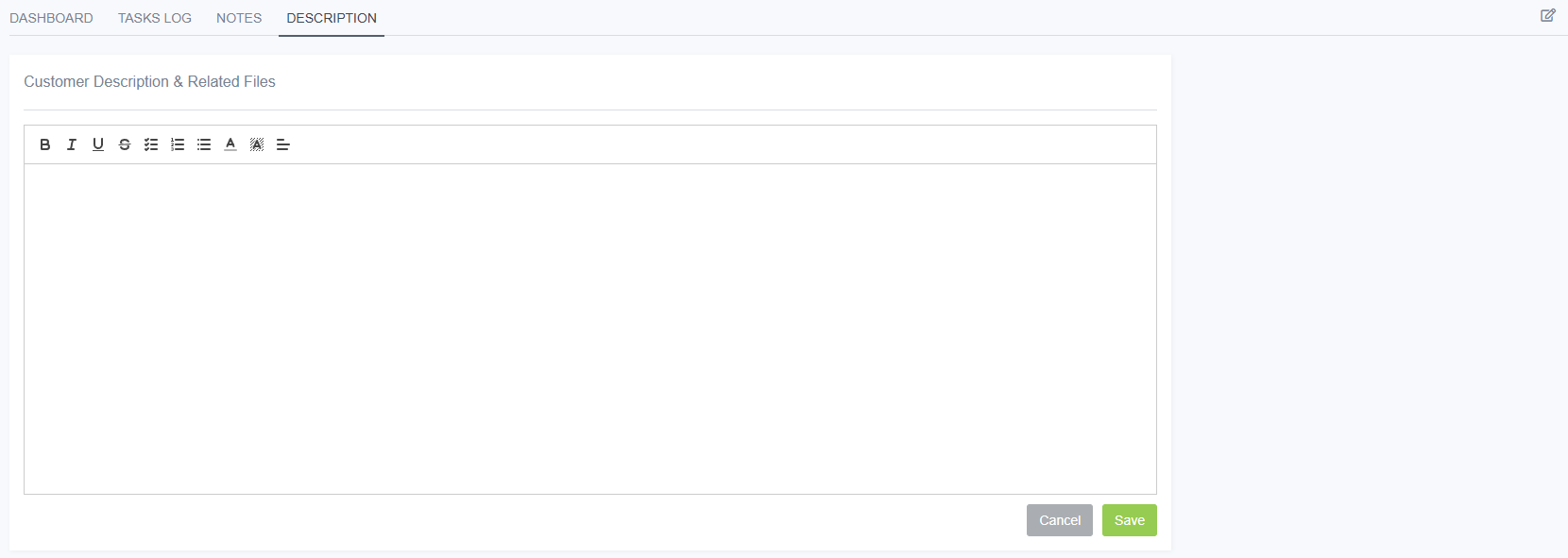 Customer description and related files - customer description, with the ability to add screenshots, pictures or other files.