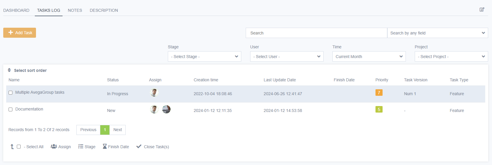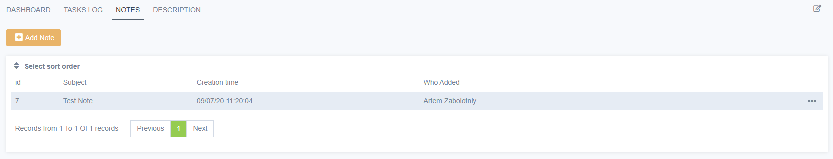 JOURNAL - tasks created for this customer. If desired, you can create a task directly from here using the Add Task button. After clicking it, you will be redirected to the expanded creation page.