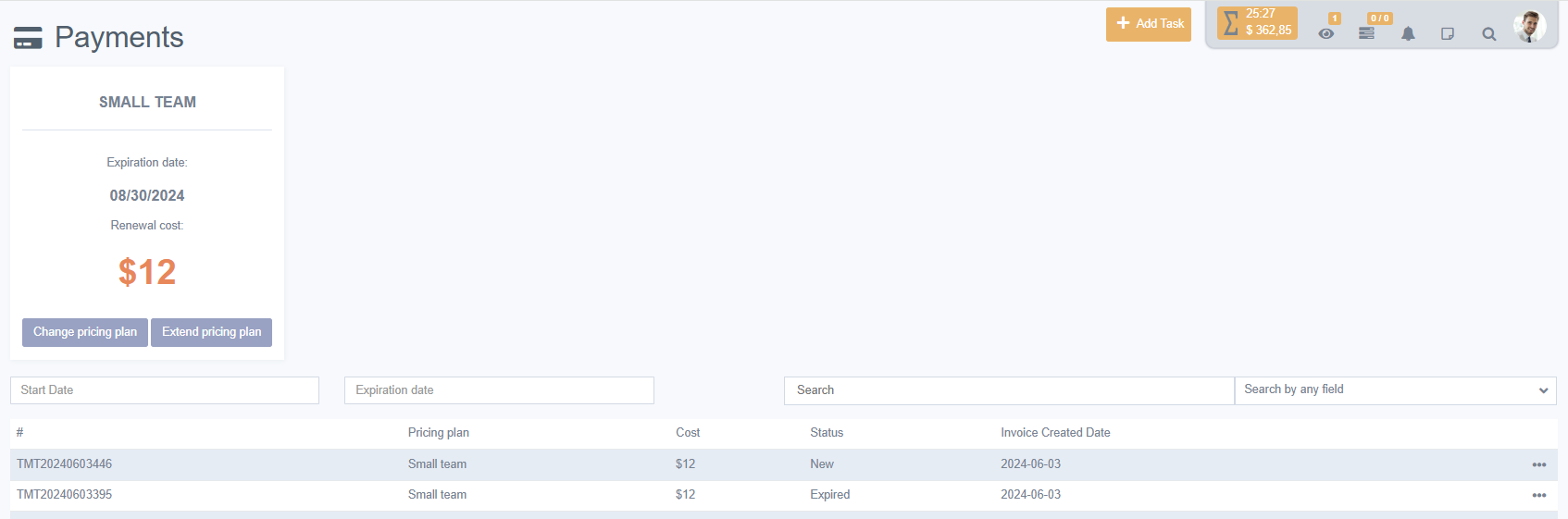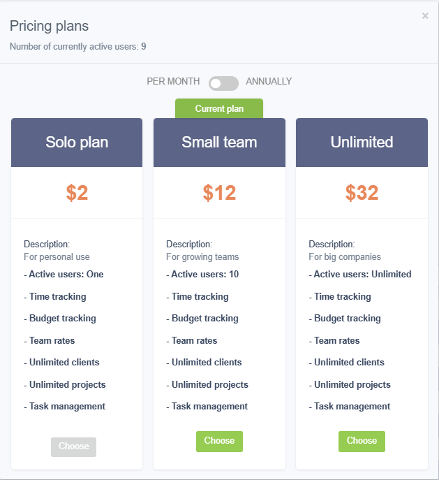 A very important point, both for us and for you. There are two types of payment - a monthly subscription and a yearly subscription. Initially, you are given a two-week trial period, during which you can familiarize yourself with our application and understand how it suits you. Then you can pay for the tariff you selected when registering, or change it. In addition, you can change the tariff at any time. There will be no loss of money - the remaining days of use will be recalculated for the new tariff and automatically added to it. Once you have made your choice, everything is simple. Make a payment via 2CO, after which, within a few minutes, access to the application will be extended for the paid period at the selected tariff.